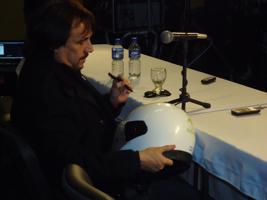 “Como todo, hay muchas cosas que se arreglarían con educación y que esa educación nos llegue a todos, a los que tienen más y a los que tienen menos”, dijo en primera instancia mientras firmaba el casco.
