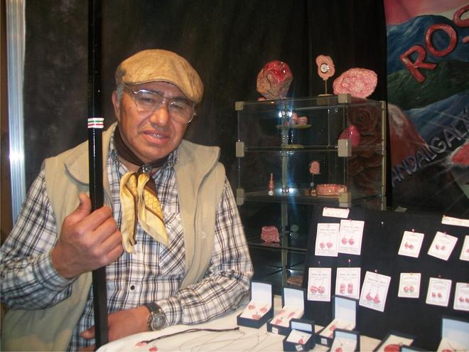 Con una gran cantidad de personas que se acercan a su stand, muestra la calidad de trabajo que posee. La Piedra Rodocrosita es su amor ya que desde la piedra bruta la trabaja en su taller , preparándola para hacer sus artesanías, disponiéndose todo el año para poder ser parte del Poncho, con gran esfuerzo y satisfacción expone muy contento todos los días.