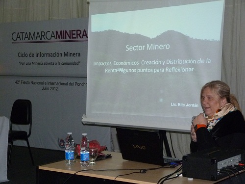 Sobre este contexto, la profesional de la economía resaltó que la actividad de solo 6 empresas mineras radicadas en el país, aportó 5.640 millones de  pesos en el 2010 de los cuales el 77% va a Nación y el 23% a las provincias.
