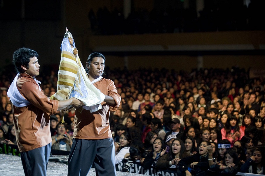 La gente estaba sentada esperando la actuación de Abel Pintos cuando la imagen de la Virgen del Valle ingresó al escenario mayor. Fue en ese momento cuando el público se puso de pie y se llevó la ovación de todos los presentes.