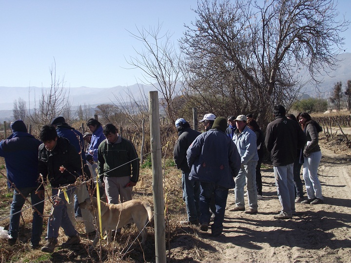 “Nosotros, de acuerdo con un convenio que tenemos con las instituciones de Santa María que son la Dirección de Producción, Agricultura Familiar y con la Asociación de Productores, estamos trabajando con la gente del INTA de Santa María, en capacitar a la gente en el manejo integral de las viñas”, apuntó.