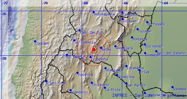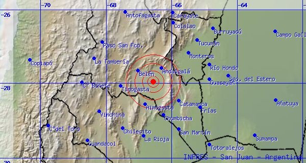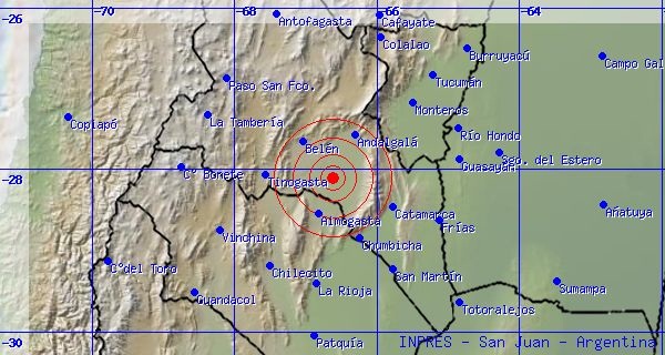 Por otra parte, a las 4.33 horas se registró otro movimiento telúrico entre los departamentos de Belén y Tinogasta, con una profundidad de 159 km y una magnitud de 5.7.