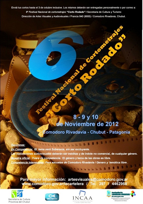 Los premios para la sección en competencia son de $5.000 para el primer premio y de $2.000 para el segundo. Los trabajos serán recibidos hasta el 3 de octubre inclusive. Para las obras enviadas por correo, se tendrá en cuenta la fecha del matasello. Las mismas deberán ser entregadas personalmente o por correo a 6º Festival Nacional de cortometrajes “Corto Rodado” – Secretaría de Cultura y Turismo / Dirección de Artes Visuales y Audiovisuales – Francia 840 (9000) Comodoro Rivadavia, Chubut.