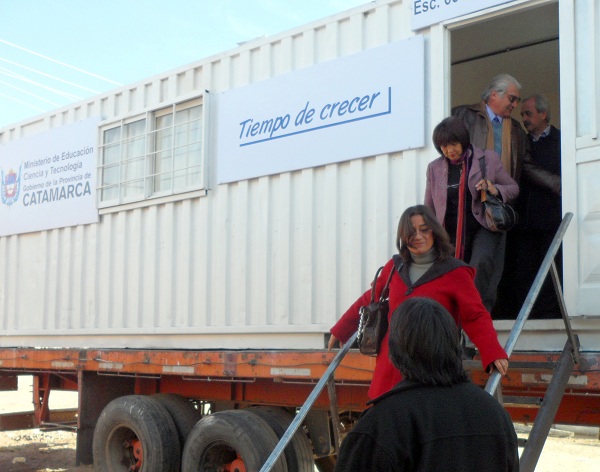 Convertido en un módulo educativo, la mencionada estructura está diseñada para ser utilizada en establecimientos de Enseñanza Rural, en la modalidad de plurigrados. Para ello, está dotada de 25 asientos con sus respectivos pupitres, tres pizarrones, y sectores de biblioteca y de computadoras. Además, cuenta con servicio de energía no convencional, baños anexos, sistema de tanque-torre y bombeo de agua potable. Construída con materiales ignifugos, cuenta también con los correspondientes sistemas de seguridad, tiene instaladas las respectivas salidas de emergencia, y dispone de matafuegos por cualquier eventualidad.