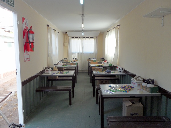 Utilizando la estructura de un contenedor de importantes domensiones, el personal de la EC lo transformó en una confortable sala, que puede ser transportada de un sitio a otro, y que en principio será utilizada con carácter transitorio para que allí funcione una de las aulas de los alumnos que lo venían haciendo en una “escuela-rancho” del Salar de Pipanaco.