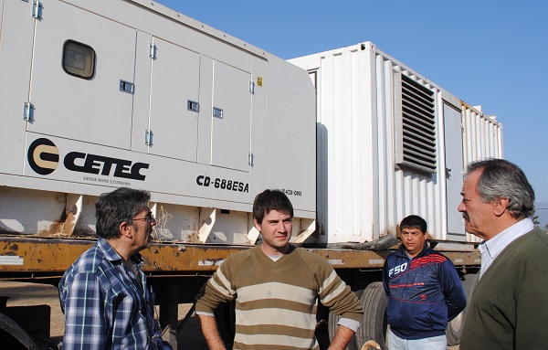 Los pesados grupos, uno marca CETEC y el otro Caterpillar, cargados en un camión oficial fueron despachados esta tarde alrededor de las 18 hs., desde el predio del CAPE, por el subsecretario de Agua y Saneamiento, Lic. Luis Méndez, y el director de Proyectos Energéticos, Ing. Federico Pastorelli, previéndose su arribo a Santa María para mañana en horas del mediodía. Paralelamente, el presidente de la EC Sapem, Dr. Eduardo Andrada, dispuso el envío de una grúa para operar la instalación de los generadores en la cabecera santamariana.