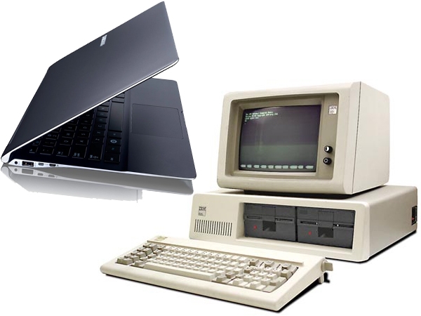 Visualizar una netbook al lado de una IBM 5150 es un ejercicio que fácilmente hace entender la evolución de las computadoras personales.