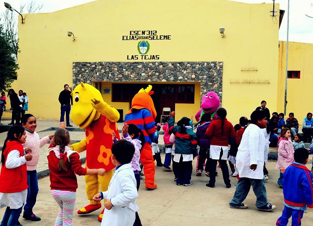 Los festejos que en realidad comenzaron días atrás con la visita de personajes como el Dinosaurio Barny y sus amigos a las escuelas municipales de Valle Viejo, tuvieron su continuidad hoy en la escuela de Las Tejas.