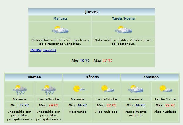 El Servicio Meteorológico Nacional prevé para las próximas horas la probabilidad de lluvias o chaparrones, aunque la temperatura continuará agradable, de acuerdo al pronóstico extendido que abarca hasta el domingo. Conozca cómo estará el tiempo.