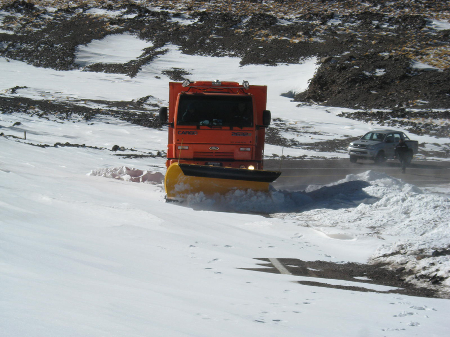 Personal de la DNV afectado al Campamento de Alta Montaña de Las Grutas informó que se intentó despejar la calzada, aunque la tarea resultó infructuosa al empeorar las condiciones climáticas.