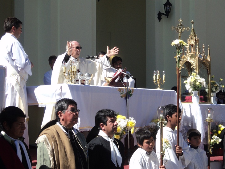 Antes de comenzar la procesión el obispo Mariano Moreno dijo sentirse contento como todos los años para esta espectacular fiesta que esta vez tuvo una obra realizada por el municipio que complemento los festejos por San Roque.
