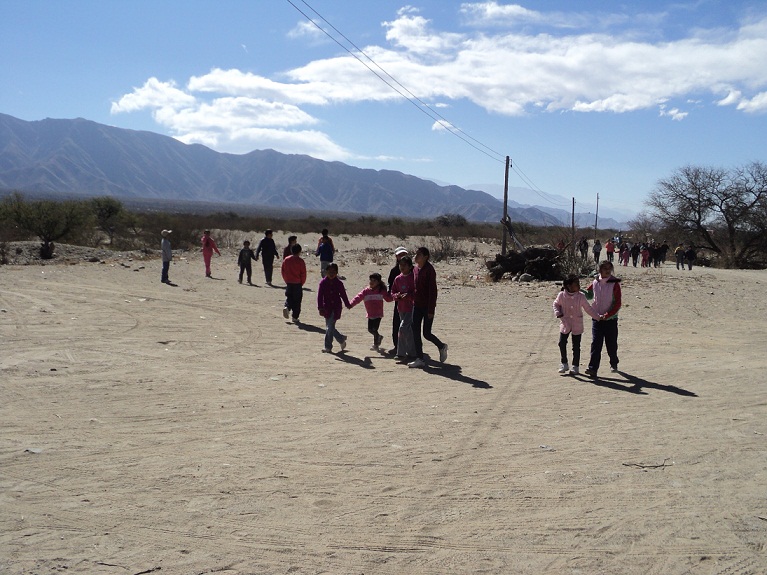 Cientos de niños comenzaron a llegar al campo de juego de Famatanca, donde Antonio Cruz organizó toda esta movida, era tanta la emoción que algunos llegaban corriendo al escuchar la bocina del trencito Heidi de la familia Arnedo quien también estuvo presente para alegría de los niños de esa localidad.