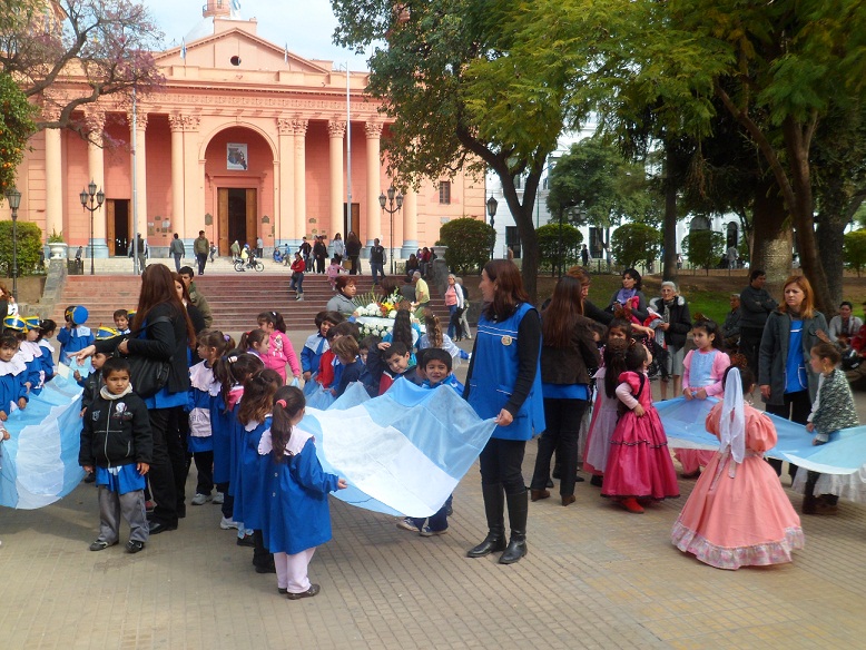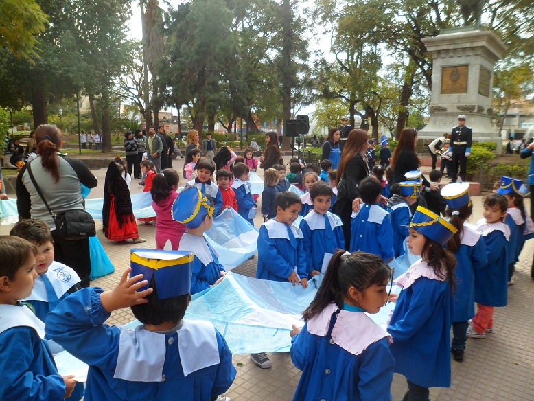 El homenaje fue con un acto frente al monumento que se encuentra emplazado en Plaza 25 de Mayo, donde se puso en escena cantos, poesía y dramatización, finalizando con una ofenda floral, dejada por los niños.