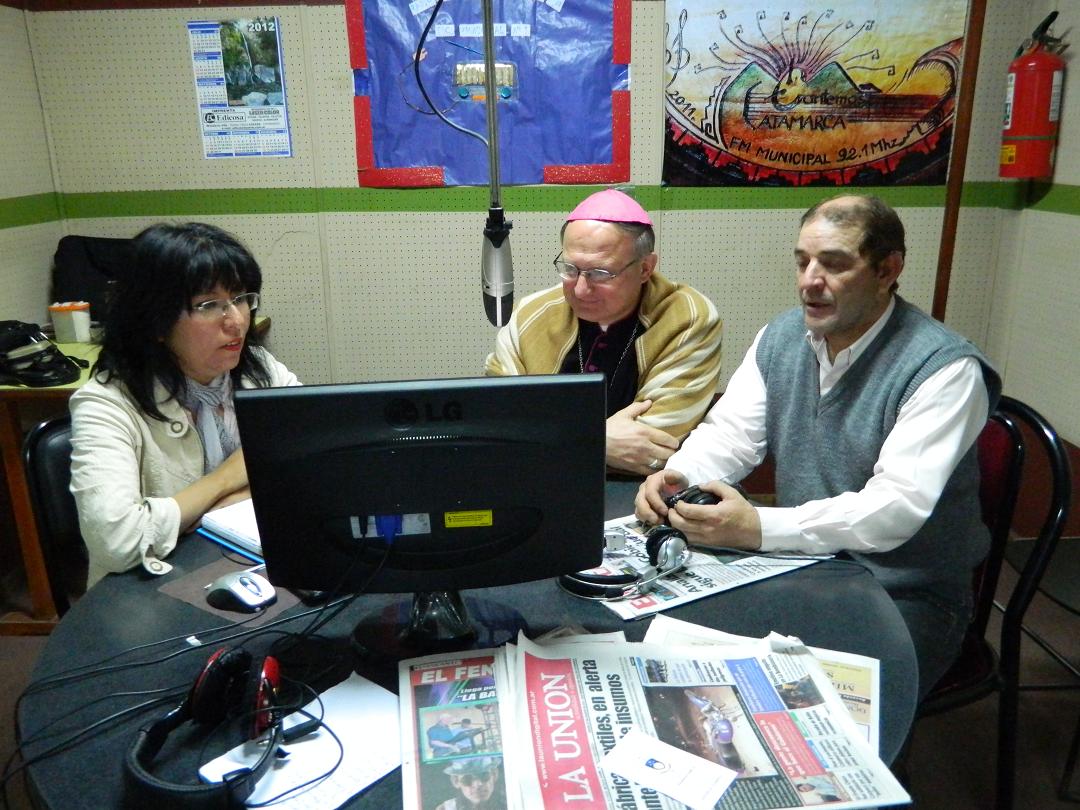 Como finalización de la primera parte de la jornada, el Pastor de la Diócesis compartió con los miembros de Radio Capital y con toda la audiencia una larga e interesante entrevista en la que se desarrollaron varios temas en un clima de cordialidad. El Obispo comentó su itinerario y agradeció el trabajo de los comunicadores, incentivándolos a ser sembradores de valores y vida con sus palabras. Contó su reciente experiencia en la Asamblea Federal de la Acción Católica, y su preocupación por el interés de los jóvenes actuales y sus modos de vida. En un momento ameno, y con un ping-pong de preguntas y respuestas se explayó sobre temas generales. La entrevista finalizó con la bendición y el saludo a toda la audiencia, pidiendo muchas oraciones.