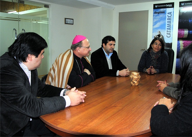 La presencia del obispo está dentro del cronograma de acciones dispuestas para esta semana con motivo de la visita pastoral a la Parroquia de la Sagrada Familia. De esta manera Urbanc fue recibido por los distintos directores Turismo de la provincia, no encontrándose en la oportunidad la Secretaria Natalia Ponferrada que está regresando por estas horas de la visita oficial de la provincia al Brasil donde se promociono en el jornada de ayer los distintos lugares turísticos de Catamarca ante los operadores turísticos del país carioca.