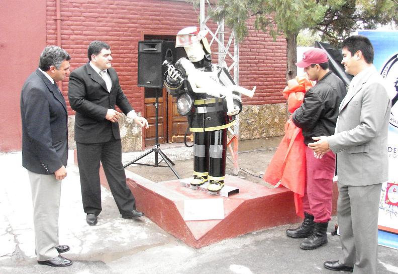 Al finalizar este evento se descubrió una estructura metálica, denominada “EL BOMBERO”, pieza artística que fue construida con elementos reciclados por los sargentos Rubén Ferreira y Jorge Romero.