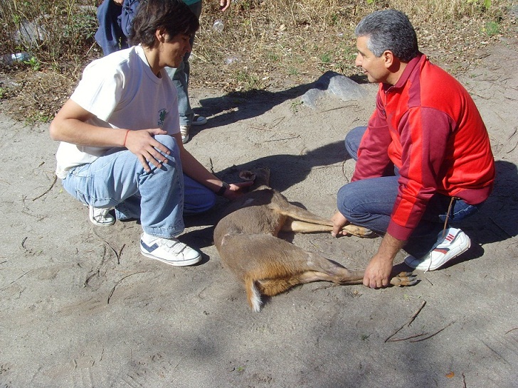 Una vez con el animal, veterinarios de la Dirección de Biodiversidad le realizaron las observaciones y curaciones necesarias ya que presentaba escoriaciones en los miembros inferiores y en el cuello, producto de los alambres donde se abría enredado