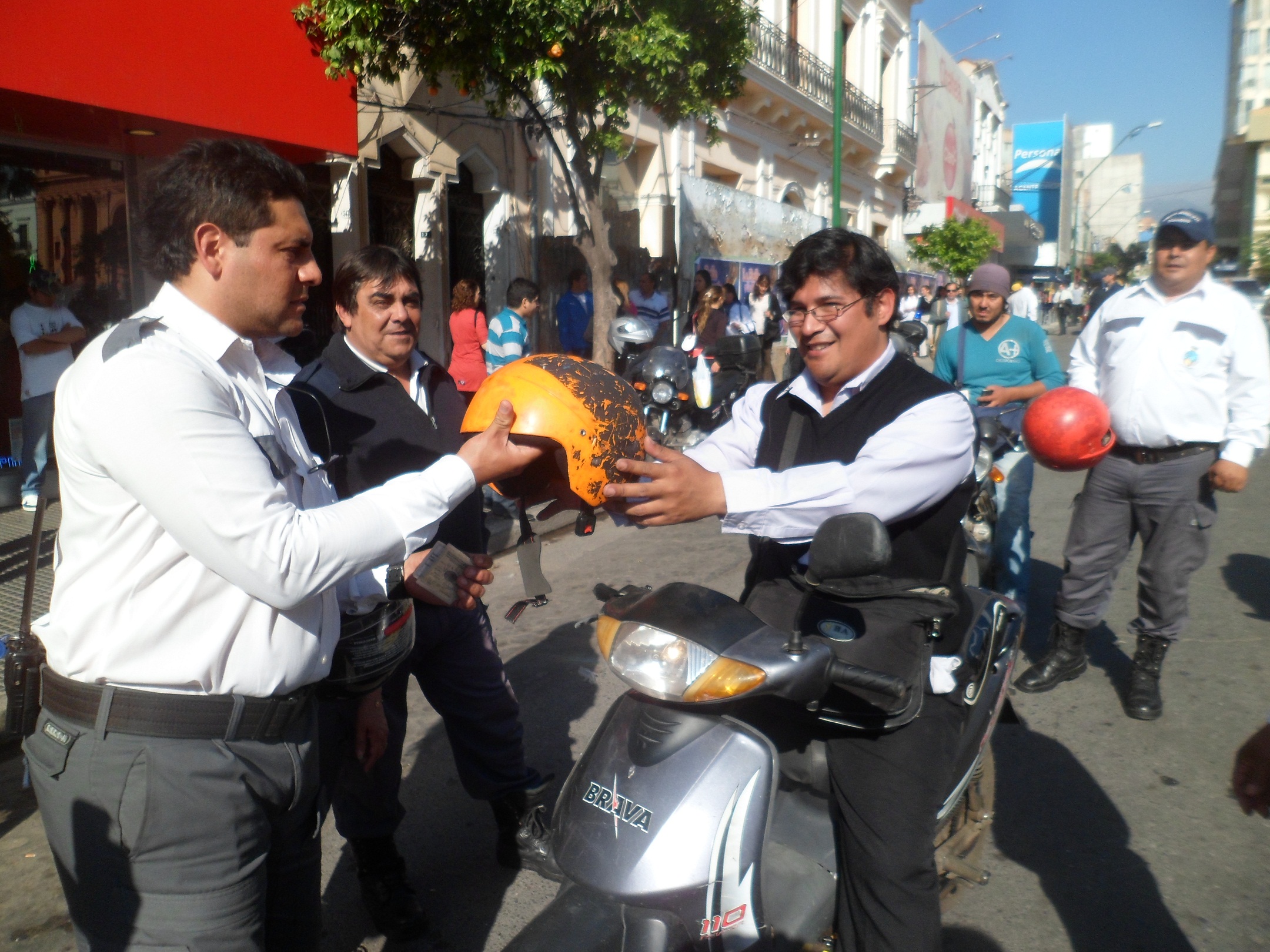 Mediante una iniciativa de la Dirección de Transito de la Municipalidad de la Capital, en pleno centro se hizo intercambio de casco a los conductores de motos.