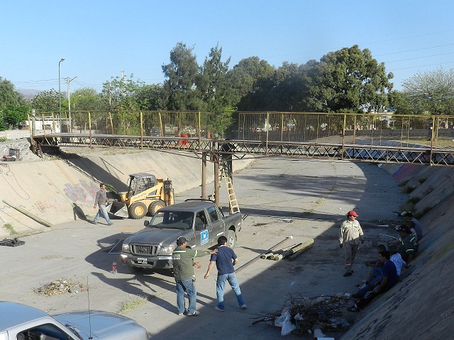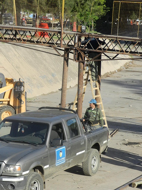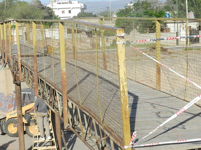 Los trabajos se completarán esta semana con el hormigonado de la base de apoyo y la colocación de elementos de seguridad tipo molinetes, para evitar que los vecinos transiten con motos provocando vibraciones, debido a que esa fue una de las causas de su caída, ya que el puente tiene resistencia para paso peatonal únicamente.