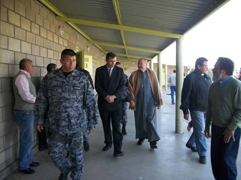Llegó al predio ubicado en la localidad capayense de Colonia del Valle, acompañado por el Pbro. Dardo Olivera, quien atiende espiritualmente a los hermanos de esa comunidad. Allí fue recibido por las autoridades de la penitenciaría durante un acto protocolar, y luego mantuvo un encuentro con aspirantes a guardiacárceles. Posteriormente efectuó un recorrido por los distintos sectores, particularmente los pabellones donde se alojan los hermanos privados de la libertad, oportunidad en que también saludó y bendijo a los familiares que se encontraban visitándolos.