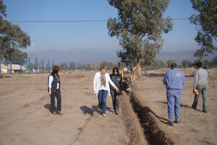 Al finalizar con las tareas mencionadas, se delimitó las calles principales del predio del Centro Administrativo del Poder Ejecutivo y se comenzó con el zanjeo para la colocación de las mangueras correspondientes al sistema de riego necesarios para el mantenimiento de las plantas a colocar como así también el cavado de pozos y demarcación con estacas para la implantación de los árboles.