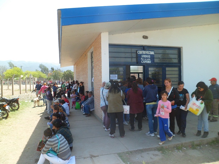 Desde las 4 de la madrugada de ayer se pudo ver a familias íntegras haciendo cola en el Centro Vecinal “Unidos por un solo Camino”, ubicado sobre ex-pista de Choya, en la zona norte de la Capital, con la finalidad de regularizar y reempadronarse para continuar siendo beneficiados con los Vales y Tarjetas Pro familias.