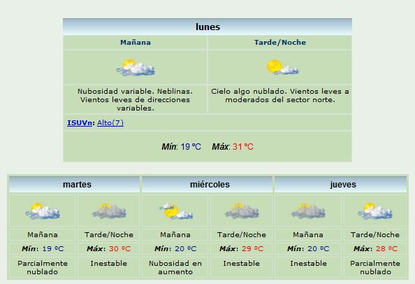 Según el servicio Meteorológico Nacional, las temperaturas continuarán altas, cercanas a los 30°, como hoy, y las mínimas se ubicarán alrededor de los 20°. El pronóstico extendido no prevé lluvias al menos hasta el jueves.