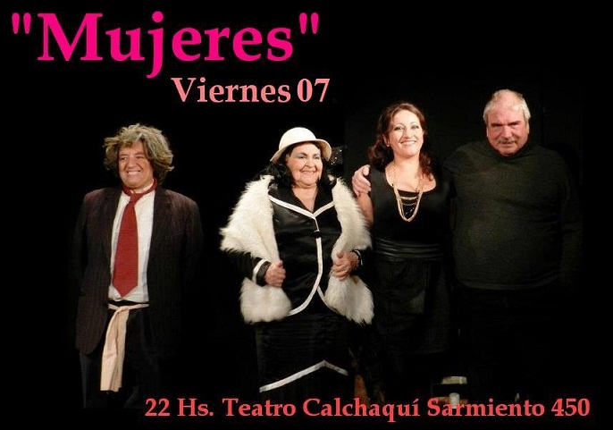 Después de un sensacional éxito en el mes de Julio, la Cooperativa Artística Cultural “El Taller” presentará este viernes 7 de Septiembre, en Teatro Calchaquí, la obra de teatro “Mujeres” con la dirección general de Héctor Pianetti y las actuaciones de Gina Belincanta, Juan Acevedo y Verónica Pereyra.