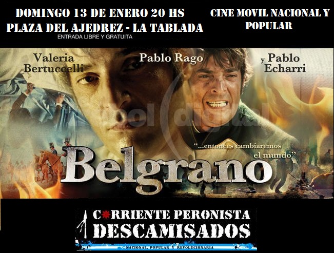 La primera película a proyectarse en el marco de este ciclo será “Belgrano. La película”, que se exhibirá este domingo 13 de enero a las 20 en la Plaza del Ajedrez, ubicada en la intersección del pasaje Vélez Sarsfield y Lavalle, en el barrio La Tablada del sur capitalino.