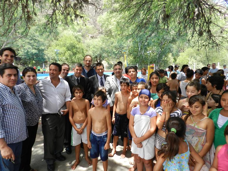 El intendente Raúl Jalil junto al Ministro de Gobierno y Justicia, Francisco Gordillo, al secretario de Estado Deportes, Maximiliano Brumec, al secretario de Turismo, Cultura y Deportes de la comuna y otras autoridades provinciales y municipales participaron de la apertura de las actividades de verano, que quedaron inauguradas con un día de campo del que participaron chicos del polideportivo 920 viviendas y Se.Pa.Ves de la ciudad.