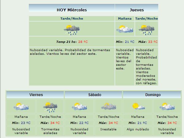 La lluvia que ayer cayó en varios puntos de la provincia, incluida la Capital, y que no sólo trajo alivio sino también serios inconvenientes, podría volver repetirse en las próximas horas, según lo adelanta el pronóstico extendido del Servicio Meteorológico Nacional. Las temperaturas máximas rondarán los 34°. Conozca cómo estará el clima en los próximos días.