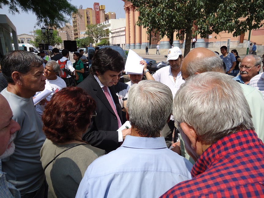 Unos minutos más tarde de reclamar con una manifestación pacífica, llegó el subsecretario de Asuntos Institucionales, Gustavo Aguirre, quien tomó el reclamo de los jubilados, con nombre y apellido para mediar en el petitorio.