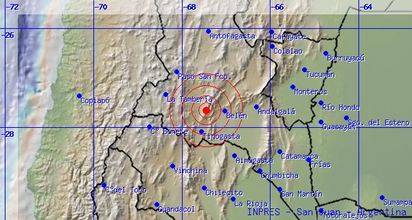 Según la información del Instituto Nacional de Prevención Sísmica el movimiento telúrico se registró con epicentro en Catamarca a las 11.26 de esta mañana.