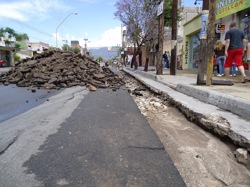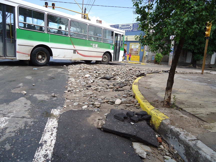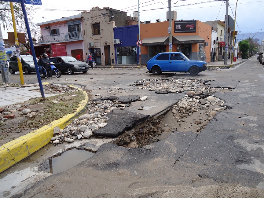 Serios inconvenientes en el pavimento sufrió la Avenida Belgrano, desde Virgen del Valle hasta Maipú, la zona más comprometida después de la azotadora lluvia de esta madrugada.