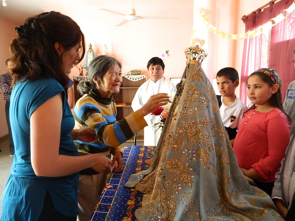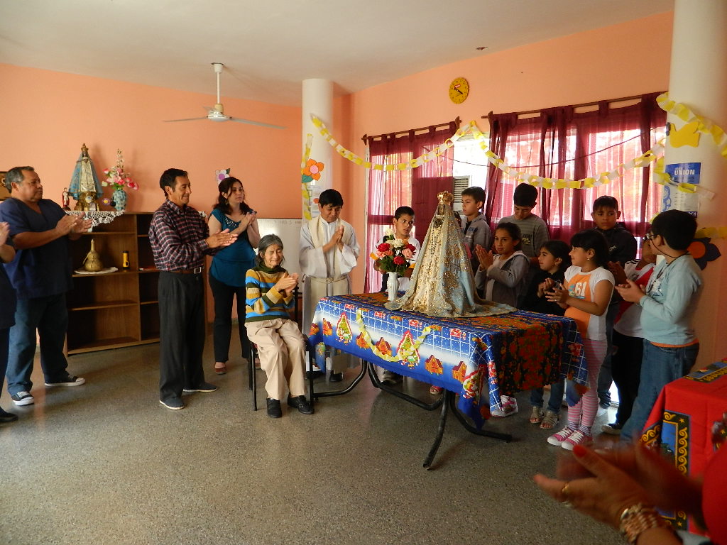 Por otra parte, el Hogar San Juan ubicado frente a la plaza de Choya se vistió de fiesta y junto a los miembros de Cáritas dieron la bienvenida a la Virgen Morena llevada por el P. Eugenio Pachado. Allí fue recibida con respeto y cariño por los empleados, niños y enfermos del lugar, quienes se acercaron a recibir su bendición y ponerse en sus manos.