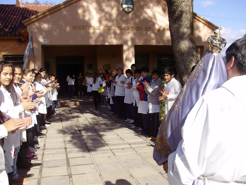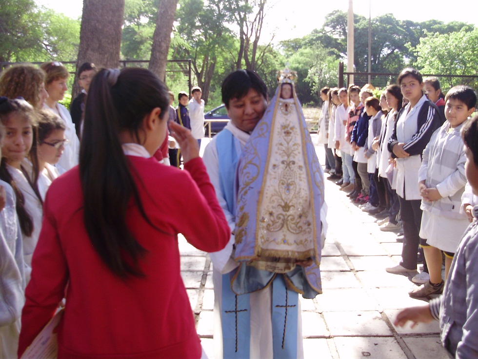 El acto de bienvenida estuvo presidido por la vice directora, Prof. Fany Rubio, y contó con la presencia de docentes y alumnos, acompañados por sus padres y familiares, además de catequistas y miembros de la Legión de María. Todos la recibieron como a una Reina, prepararon poemas, danzas y representaciones. Hubo momentos de oración íntima y actividades para los padres, como una mateada compartida en un ambiente reflexivo y orante.