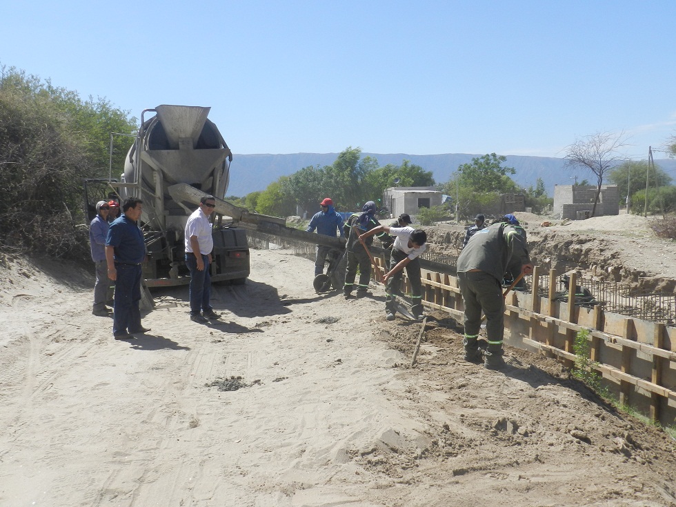 Luego de las respectivas excavaciones, las compactaciones del suelo y el hormigón de limpieza en este tramo desde la ruta 38 hasta la Avenida circunvalación, consta de 500 mts de un ducto de hormigón cerrado de 2,40 de ancho por 1, 60 de alto, se intervendrá en la segunda etapa que corresponde a 500 mts más desde la ruta 38 hasta la AV. Manuel Navarro donde desembocan todas las captaciones de agua.