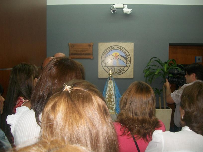 Con gran expectativa, todo el personal junto al rector de la universidad, Ing. Flavio Fama, se congregó en la vereda del edificio para recibir con aplausos y vivas a la Venerada Imagen llevada por el Rector del Santuario y Catedral Basílica, Pbro. José Díaz. Desde el ingreso la acompañaron hasta el lugar donde se realizó un acto de bienvenida, oportunidad en que el P. Díaz expresó que “la visita de la Virgen es como la visita de María a su prima Isabel. Y nos invita a visitarnos continuamente unos a otros. Isabel experimentó dentro de ella el salto de alegría, de gozo. Así, esta visita tiene que ser para nosotros un salto de alegría por saber que María está cerca”, para que “de esta manera nosotros podamos acercarnos a Ella y seamos partícipes de las fiestas que comienzan el 29 de noviembre”.