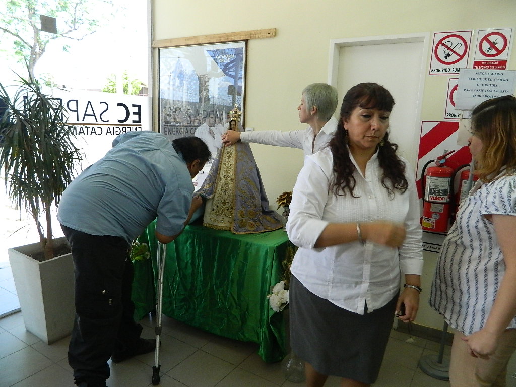 La jornada de hoy fue de especial emoción para los trabajadores de Energías de Catamarca (EC Sapem), quienes recibieron a la Madre Morena en sus instalaciones en horas tempranas. Esta presencia sorprendió gratamente a los usuarios que allí se encontraban realizando distintos trámites.