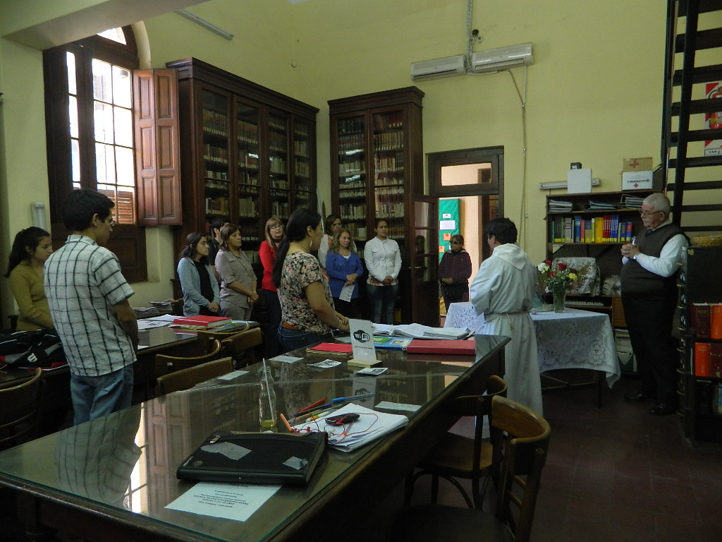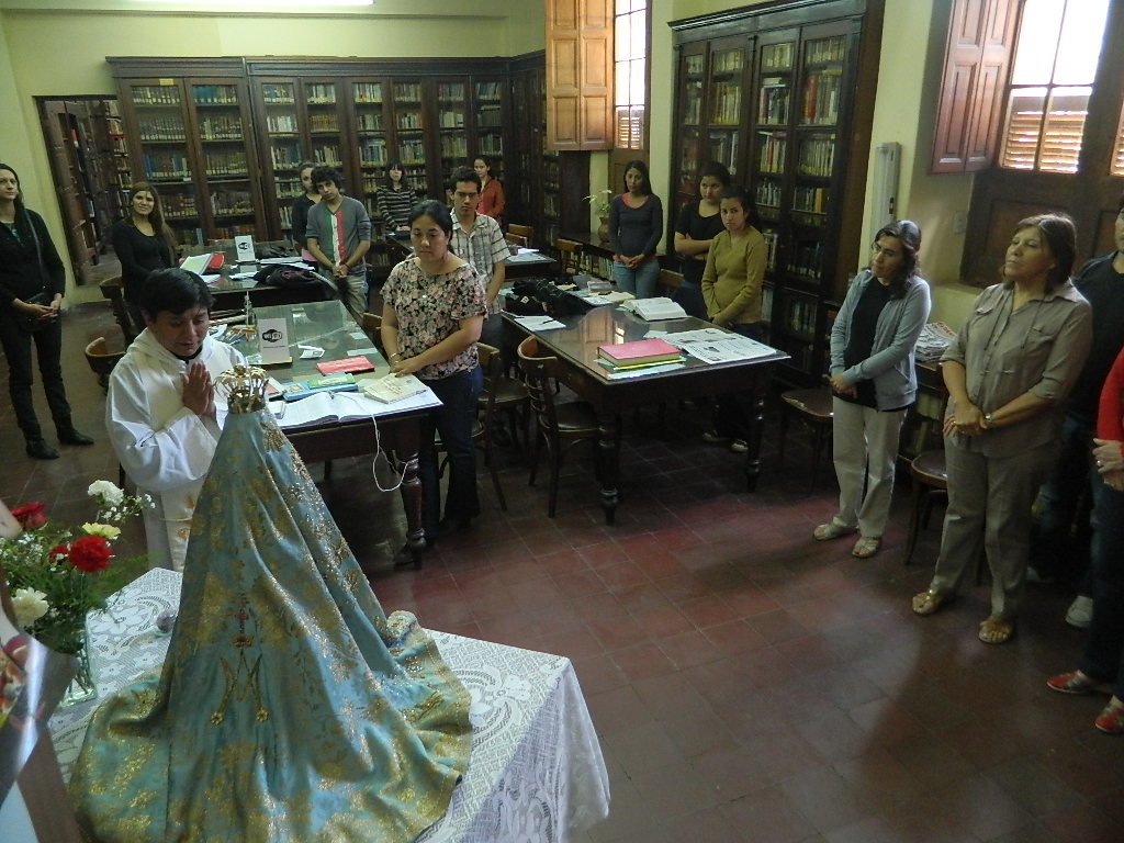 El sacerdote exhortó a quienes allí se desempeñan como a las personas que se encontraban en esos momentos consultando bibliografía, a participar con devoción y entusiasmo en el novenario en honor a la Virgen del Valle, que comenzará el 29 de noviembre y culminará el 8 de diciembre con la Solemne Procesión.
