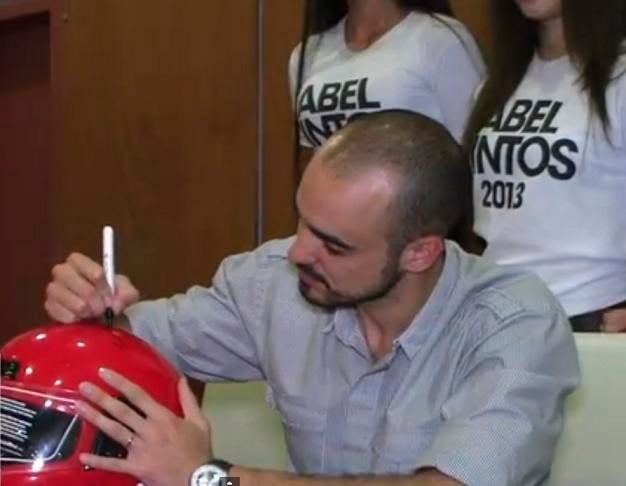Para ser partícipe de esta destacable campaña de concientización, el pasado miércoles y con motivo de presentar su último CD, Abel Pinto autografío cascos que con posterioridad serán entregados a los motociclistas.