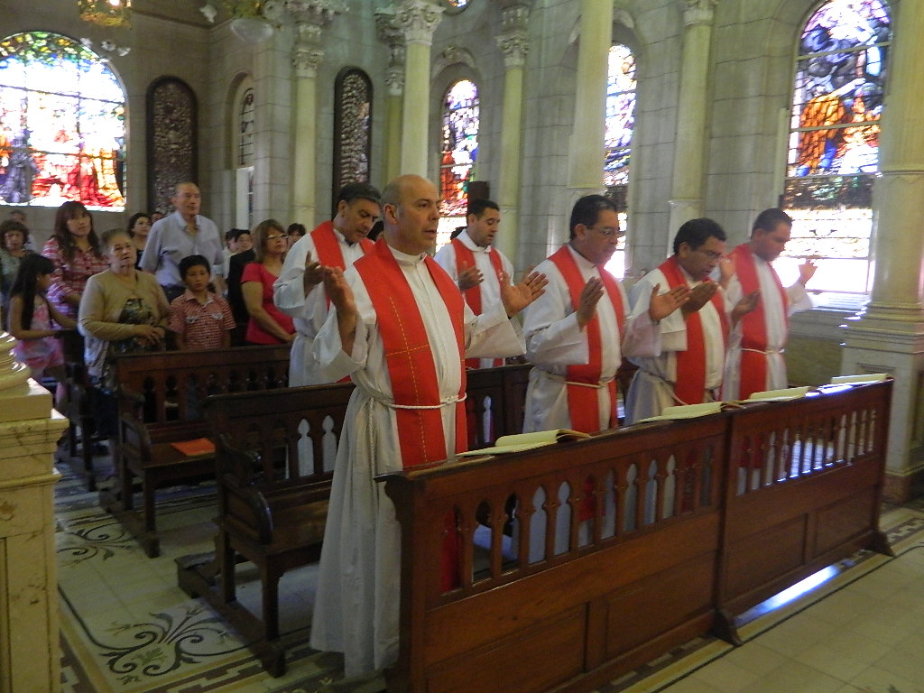 La ceremonia fue concelebrada por hermanos sacerdotes del clero local y en el transcurso de la misma los jóvenes presbíteros consagraron su ministerio a la Madre Morena.