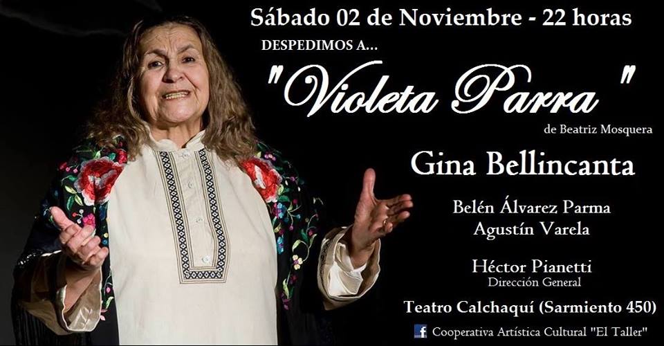 “Desde un espacio romántico y repleto de sensibilidad, la actriz Gina Bellincanta transita cada uno de los pesares de Violeta Parra como si fuese ella misma quien estuviese allí “gritando sus dolores” reencarnada en el personaje” se anunció desde la producción de la pieza.