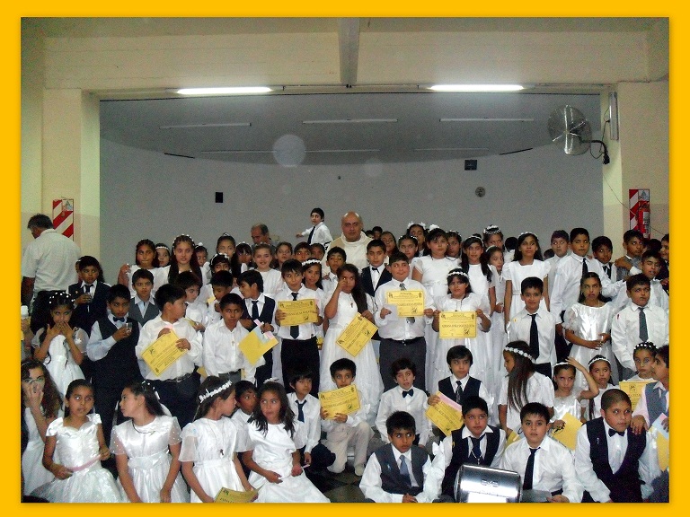 Asimismo, manifestó que “la Eucaristía, la Primera Comunión que hoy recibirán, nos ayuda para llegar hasta Dios, nos ayuda a caminar con esperanza al encuentro de ese Dios que es amor, que nos quiere tanto, que es Dios de vivos y no de muertos, que nos quiere cerca de El. Hoy vamos a pedir al Señor esa gracia para tratar de ser mejores, perseverantes y ser niños cristianos misioneros de la Palabra de Dios, que es la fuerza viva del Resucitado, en sus vidas y en sus familias”.