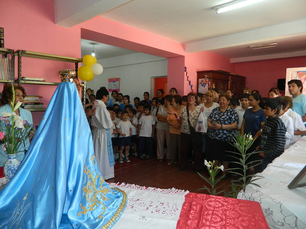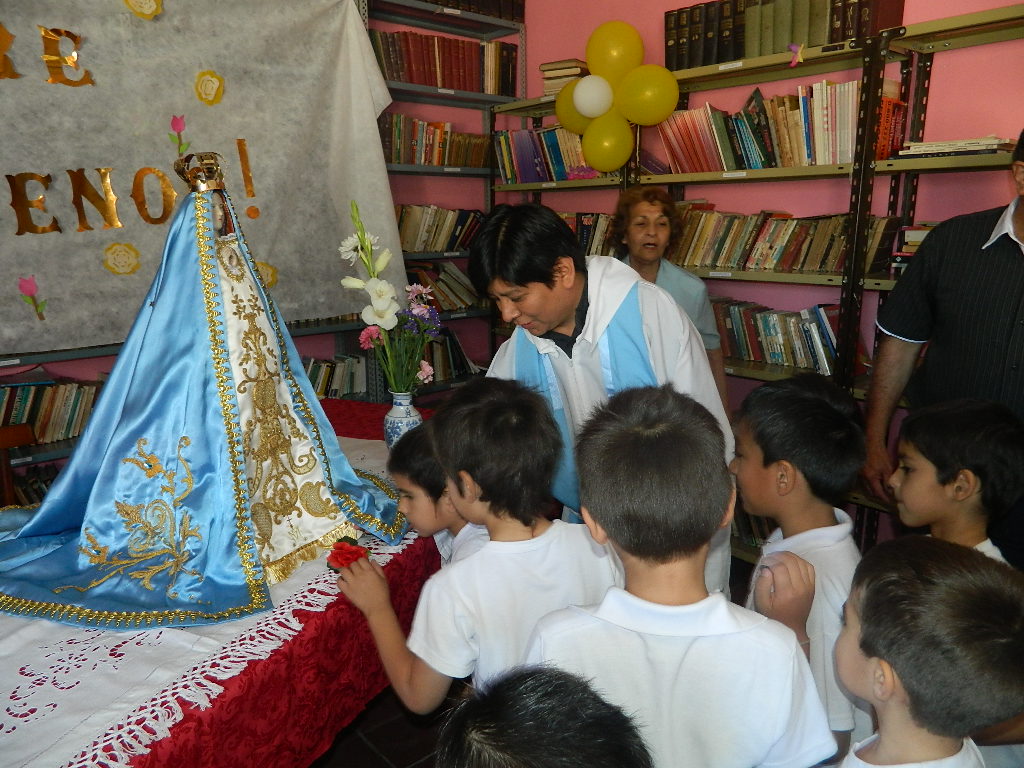 El Rector de la Catedral Basílica, Pbro. José Antonio Díaz, arribó a la institución de avenida Belgrano con la Imagen de la Virgen del Valle, que quiso acercarse a sus hijos predilectos.