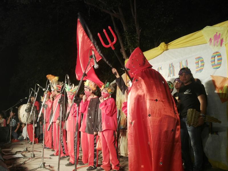 Los alumnos de 6º grado de la escuela 448 junto a los alumnos de la escuela de música dirigidos por el profesor Sergio Ochoa y toda la dirección de Analia Villagrán, una gran luchadora por la cultura santamariana, hicieron poner de pie al público presente en la plaza para aplaudir la presentación de este proyecto nacional regionalizado como lo es el carnaval y donde la danza, la música, el calor y el color de las comparsas hicieron revivir a los viejos carnavales de Santa María.