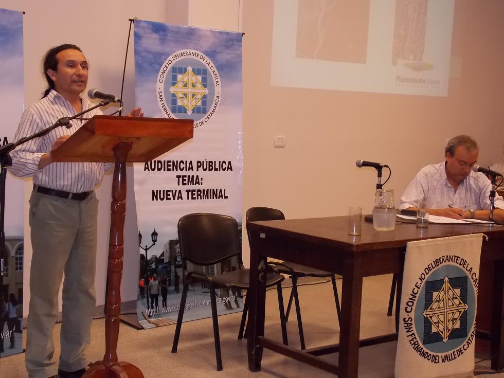 Hicieron sus presentaciones el Ing. Osvaldo Moreno (Estudio de localización de la Terminal de Ómnibus-2010); el Arq. Rodrigo Molas y el Arq. Luis Monferrán (Dirección de Planeamiento Urbano-Municipalidad de SFVC); el Arq. Franco Ferioli (Unión de Arquitectos de Catamarca) y finalmente se abrió una ronda de preguntas y respuestas para quienes estaban en la sala y pretendía expresarse libremente sobre el tema.