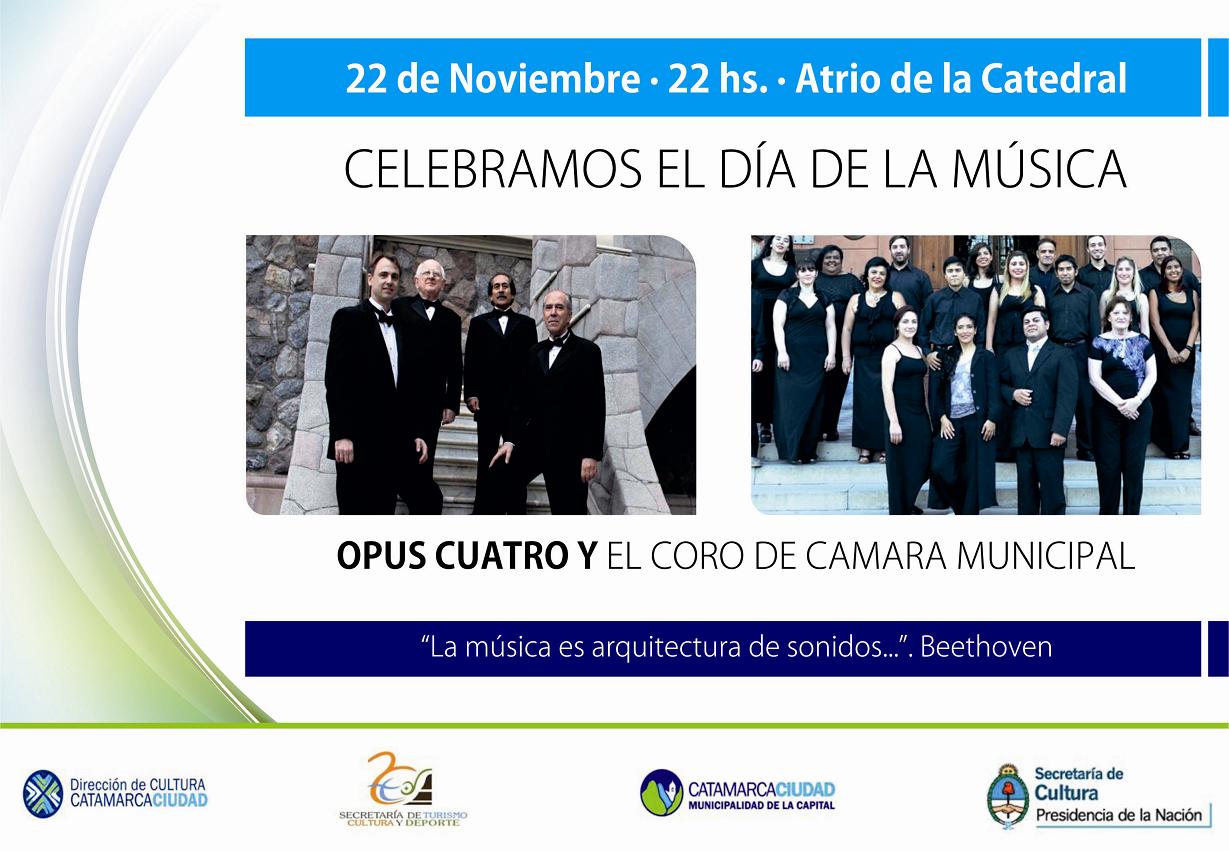 “Cada 22 de noviembre se conmemora en todo el mundo el Día de la Música (...) la fecha recuerda a Santa Cecilia, Patrona de la Música, que murió un 22 de noviembre, y en ese marco se realiza este evento que contará con la grata presencia del conjunto vocal Opus Cuatro, que junto a otros artistas de nuestro medio prestigiarán esta velada de gala”, comentó Ariel Molina, director de Turismo del municipio capitalino.