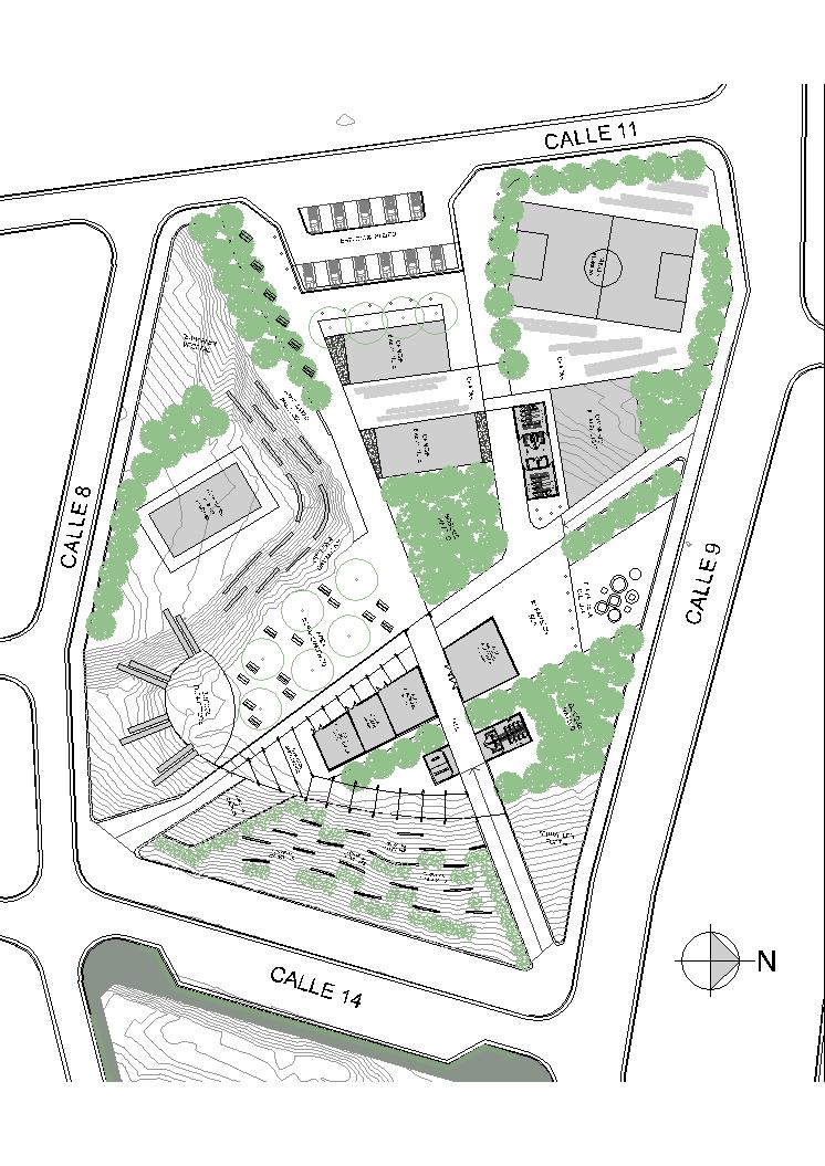 Asimismo, hacia el sur se creará el “Área Institucional” con un espacio disponible para equipamiento educativo. El espacio contará con un salón de múltiples actividades con su mástil, aulas talleres, aulas multimedias, aulas gastronómicas y aulas para capacitaciones y otros oficios. Se acompañará con núcleos de baños y depósitos. El complejo contara con galerías para realizar las actividades al aire libre, un polo para concentrar las actividades de conocimientos y concretar oportunidades de ventas de todo lo aprendido. También se acompañará con un espacio de terrazas de cultivo para apoyar programas, y sector de paseos que podrán ser utilizadas para exposición o ferias.