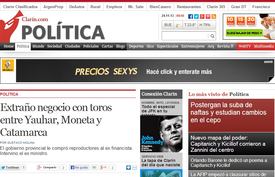En un artículo publicado en el día viernes 22 de noviembre por el diario Clarín, se involucra al Programa de Servicios Agrícolas Provinciales (PROSAP) en un proyecto de compra de reproductores bovinos por $10 millones a través de la Agencia de Desarrollo de Catamarca (ADEC).